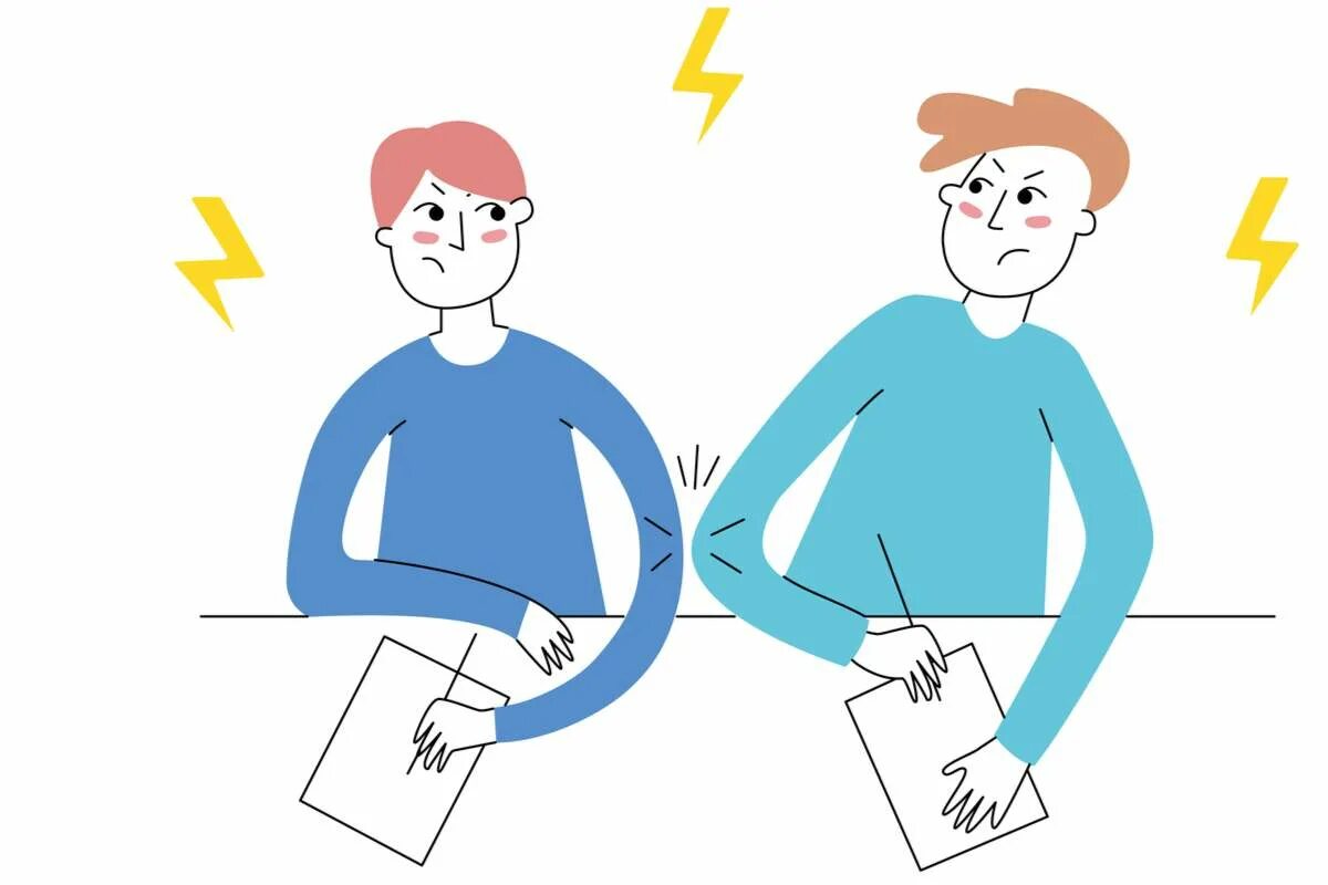 На рисунке изображена проблема соседства за рабочим местом правши и левши