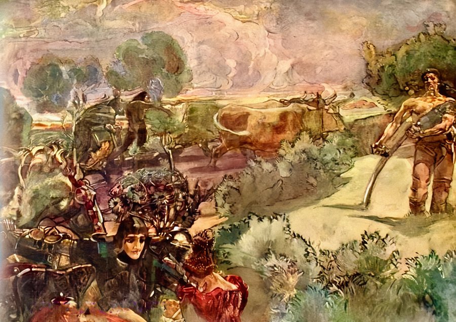 В панно можно увидеть и Баяна с гуслями, который словно начинает рассказ, и встречу Вольги с пахарем Микулой, где один символизирует духовную силу, а другой — земную, и знаменитую победу Ильи Муромца над Соловьём-разбойником, которую Рерих поместил в общий северный пейзаж. Есть и история Садко, где художник показывает богатый Новгород и выбирает более реальное прочтение былины, подчёркивая путешествия купца в дальние страны. Сейчас «Богатырский фриз» рассматривают как важное произведение, которое объединяет разные сюжеты о русском прошлом и показывает, как Рерих понимал историю своей страны.