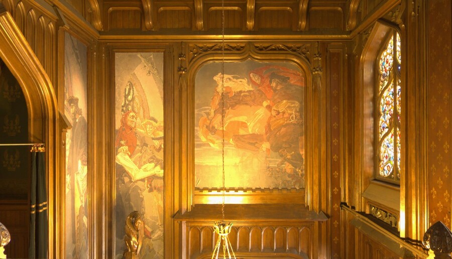 Интерьер готического кабинета в особняке в Подсосенском переулке, снимок экрана с тура по зданию