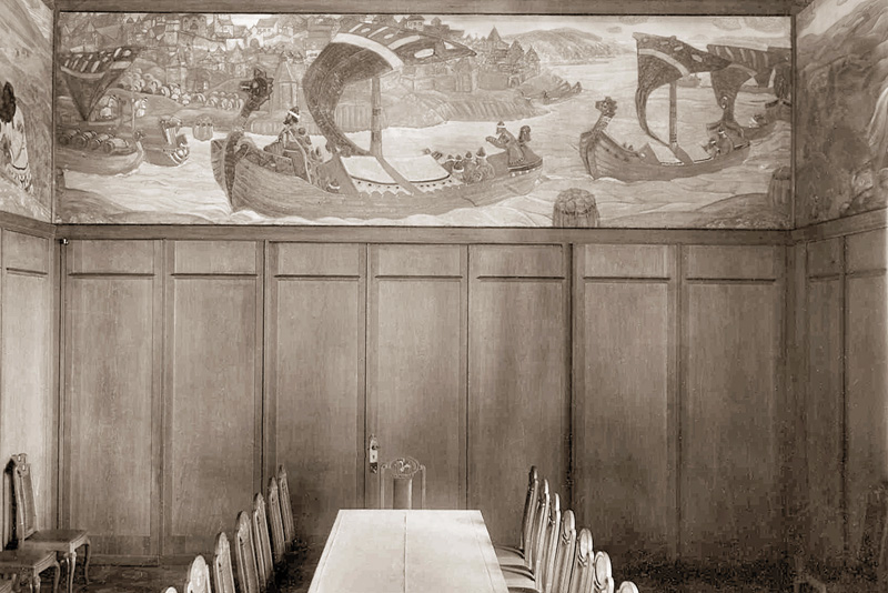 Материал для исследования я отбираю по принципу связности и целостности, рассматриваю только те циклы, которые изначально задумывались как часть интерьера и не могли существовать отдельно от него. Мне важно, чтобы в каждом примере можно было увидеть замысел художника и его работу с пространством будь то спокойные символистские панно или яркие декоративные композиции.