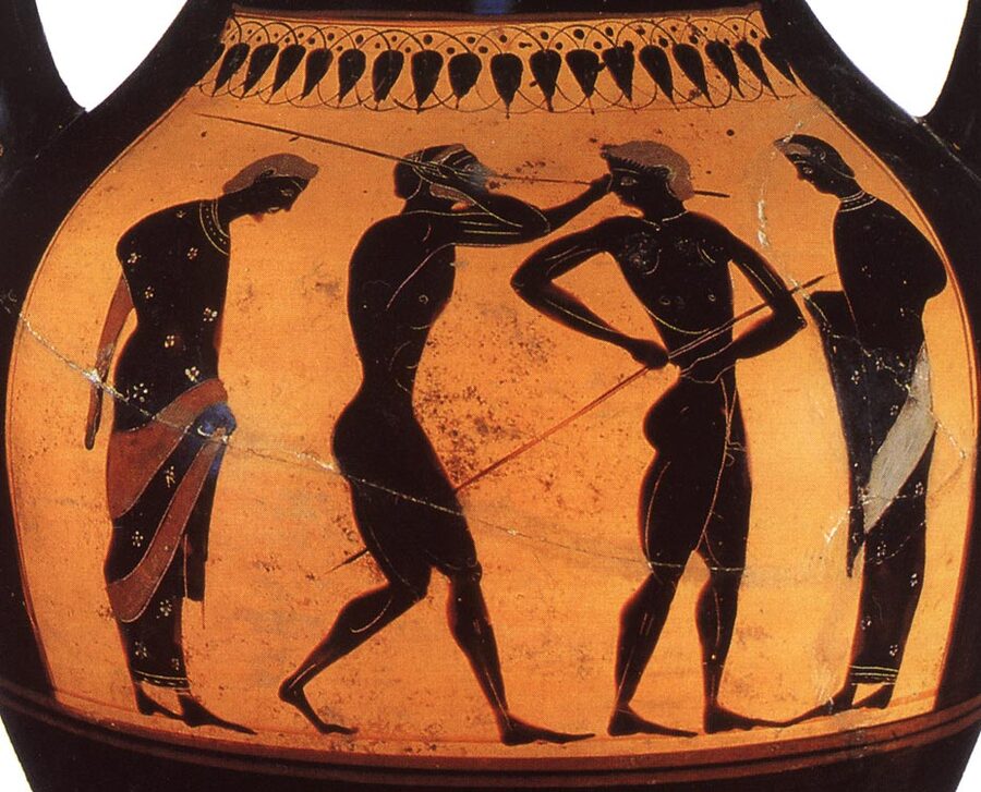 Два атлета, Кон. V в. до н. э. // Атлеты с копьями и тренеры. Деталь, Ок. 530 г. до н. э.