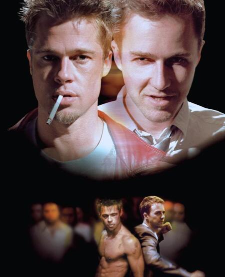 Постер к фильму «Бойцовский клуб», 1999 г., реж. Дэвид Финчер // Кадр из фильма «Бойцовский клуб», 1999 г., реж. Дэвид Финчер