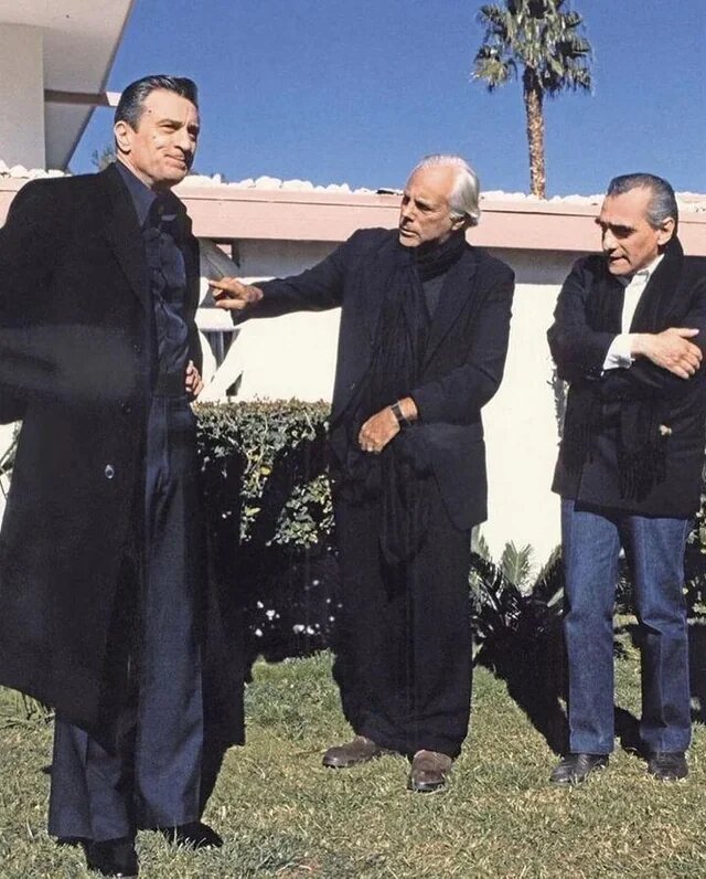 Мартин Скорсезе и Джорджио Армани, в том числе и на съёмочной площадке фильма «Казино», 1994 (справа)