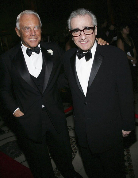 Отдельного внимания заслуживает связь режиссёра с Джорджо Армани. Об их дружбе известно в индустрии моды и фильма: с конца 1970-х Армани был одним из первых дизайнеров, кто воспринимал кино как важную среду формирования эстетики. Он активно сотрудничал с Голливудом и лично влиял на дизайн костюмов в ряде фильмов. Скорсезе и Армани познакомились в конце 80-х, когда Скорсезе работал над несколькими рекламными роликами для Armani, а в 1990 году вышел короткометражный документальный фильм Скорсезе о Джорджио Армани, который назывался «Fatto a Milano» («Сделано в Италии»). Он стал первым документальным фильмом Скорсезе с 1978 года. Обоих связывала общая философия: оба стремились показать мужчину не как карикатуру на мужественность, а как сложную фигуру, где стиль — это продолжение характера. Армани ценил честность взглядов Скорсезе, а Скорсезе — способность Армани создавать костюмы, которые одновременно передают эпоху и вне времени. Можно сказать, что Армани стал визуальным «соавтором» эпохи Скорсезе, а фильмы Скорсезе — популяризаторами эстетики Armani. Этот взаимный обмен усилил позиции бренда в США и создал культурный образ мужчины конца XX века.