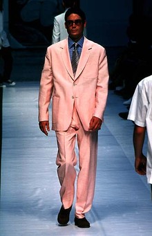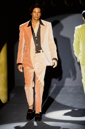 Яркие цвета стали частью новой маскулинности конца XX века. В коллекциях Versace конца 1980-х мужчины носили бирюзовые костюмы, лимонные пиджаки, малиновые рубашки. Итальянская мода побеждала американскую своей экспрессивностью: роскошные ткани, глянцевые материалы, шелк, атлас, пастельные оттенки.