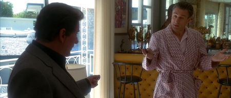 В фильме «Казино» костюмы Сэма Ротстина из шёлка становятся почти фетишем визуального повествования. Его рубашки блестят под светом казино, костюмы переливаются — как будто он сам часть механизма, который управляет деньгами и тщеславием города.