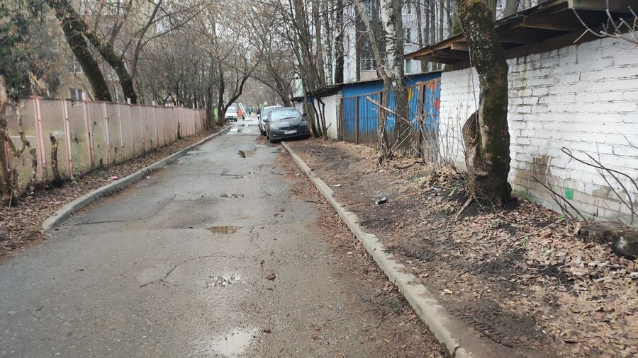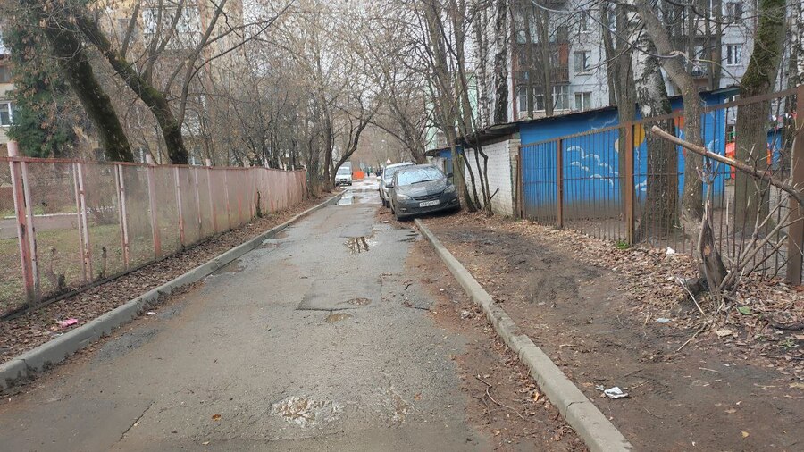 Пространство двора легко проницаемо: сюда свободно въезжают автомобили, не встречая контролирующих барьеров. Парковка формируется стихийно — автомобили занимают любой удобный участок между домами, будь это зеленая зона или пешеходный тротуар. Подобное размещение создает окно для конструирования новых траекторий и повторяющегося действия.