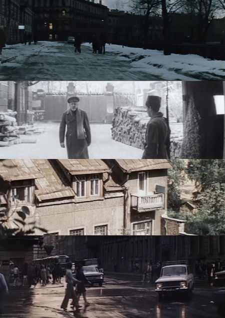 В фильме «Голос» город выступает более напряжённым и взволнованным. Здесь чувствуется нерв киноиндустрии Ленинграда 1970-х. Петербург не выглядит спокойным. Он будто наполнен внутренним давлением, которое разрывает отношения внутри съёмочной группы. Улица перед киностудией, пустые коридоры, лестницы, монтажные комнаты. Всё это кажется частью большого организма, в котором герои пытаются сделать что-то правильное, хотя прекрасно понимают, что их силы ограничены.