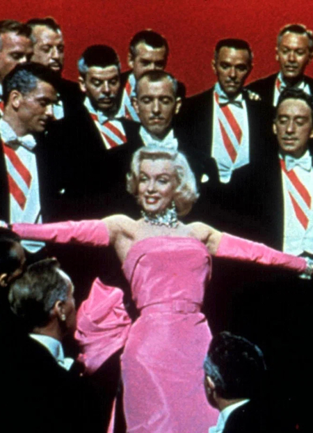 «Джентльмены предпочитают блондинок " (1953) представил миру другой образ — образ сексуальной, уверенной в себе женщины в лице Мерлин Монро. Розовое платье, созданное Уильямом Травиллой для сцены «Бриллианты — лучшие друзья девушки», стало одним из самых узнаваемых платьев в истории кинематографа. Платье было создано из шелкового сатина, который был приклеен к войлоку, чтобы он держал форму и не прилипал к телу. Результат был потрясающим — платье двигалось вместе с телом, но никогда не теряло своей формы, создавая эффект идеальной женственности.