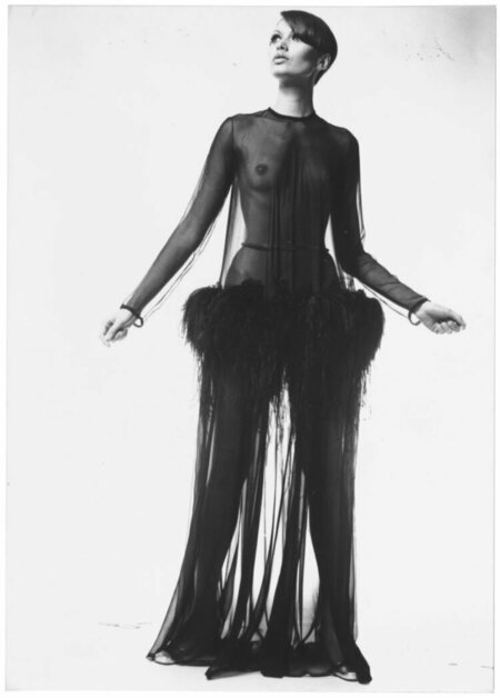 В творчестве Ива Сен-Лорана прозрачные вещи занимали особое место. Его привлекли эти легкие материалы, потому что они поощряли движение и экспрессию, а также потому, что они по своей сути противоречат функциональному назначению одежды: скрывать и защищать.