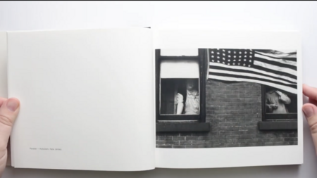 Например, в фотокниге с фотографиями Гордона Паркса присутствуют развороты, на которых появляется изображение на полосу. В таком случае, пропадает акцентный элемент, и зритель начинает считывать историю, как рассказ или повествование, где на развороте отсутствует «всплеск» или кульминация, здесь есть только планомерный разговор по теме.
