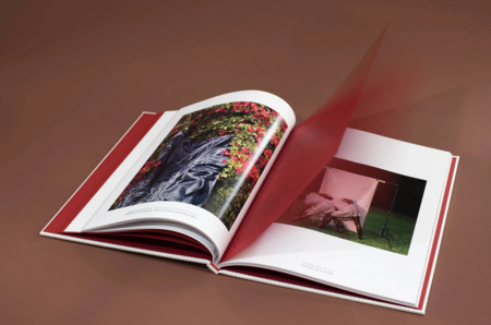 Во время анализа и поиска фотокниг, были найдены интересные вариации работы с пустыми страницами в рамках фотокниги. Например, в работе Widline Cadet «Ritual [Dis]Appearance / Seremoni Disparisyon» Красные страницы, которые обрамляют изображение, резонируют с цветом лепестков на фотографии. Это создает сильную визуальную связь и усиливает эмоциональное воздействие снимка.