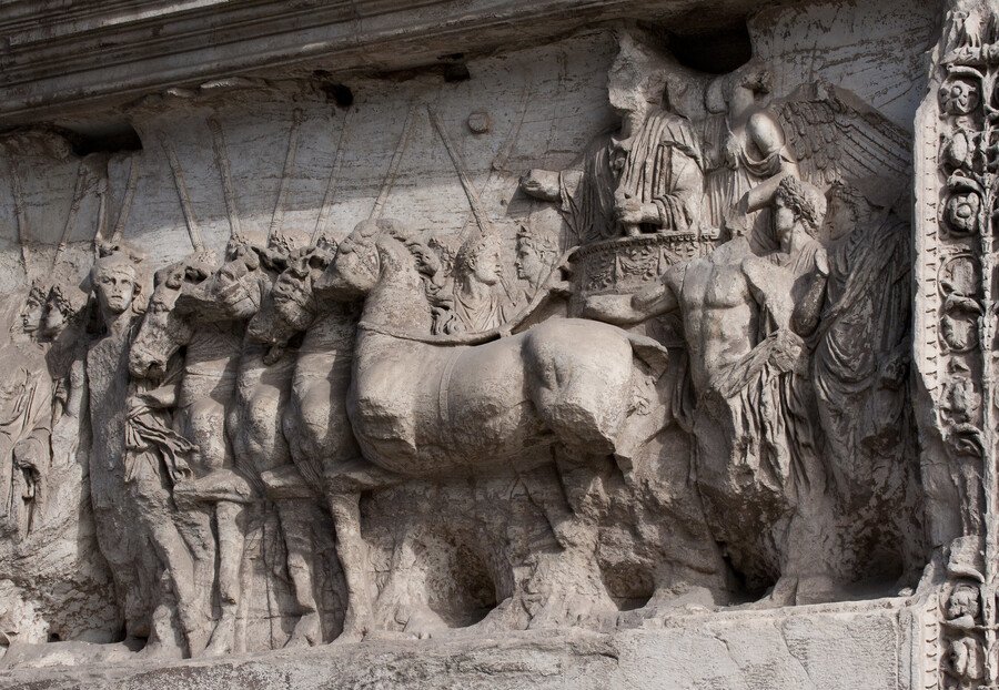 — Римская монументальная скульптура, включая триумфальные арки и колонны, была более посвящена историческим событиям и военным достижениям. Эти произведения искусства служили не только для украшения, но и для передачи политических месседжей.