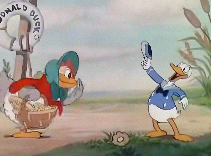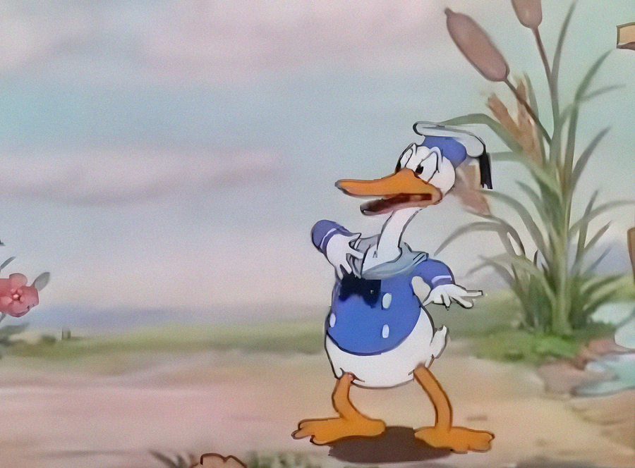 Дональд Дак, появившийся в 1934 году, противопоставляется своим характером Гуффи: быстрая, резкая речь, слегка неразборчивое кваканье и громкие интонации усиливали его вспыльчивый характер.