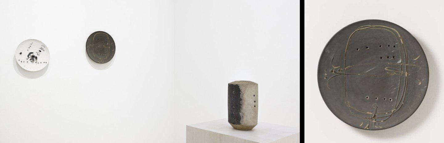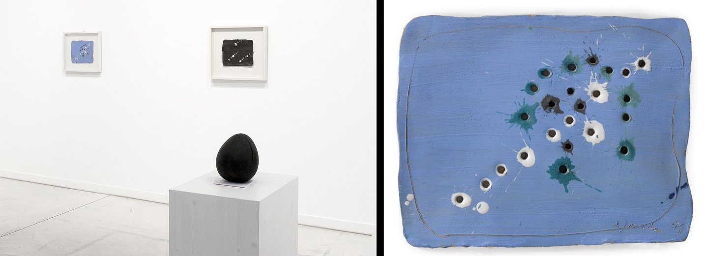 1 — Выставка Lucio Fontana: Ceramics в Galerie Karsten Greve Cologne, 2020 (фото: Christopher Clem Franken), 2 — Concetto Spaziale (1957, Lucio Fontana)