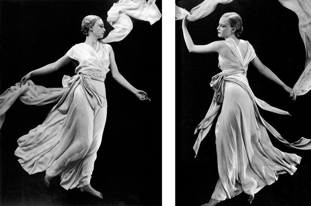 Вечерние платья Мадлен Вионне для журнала Vogue, фотография Эдварда Штайхена, 1930 г. /Модель в платье от Vionnet. Фотограф Георгий Гойнинген-Гюне 1932 г.