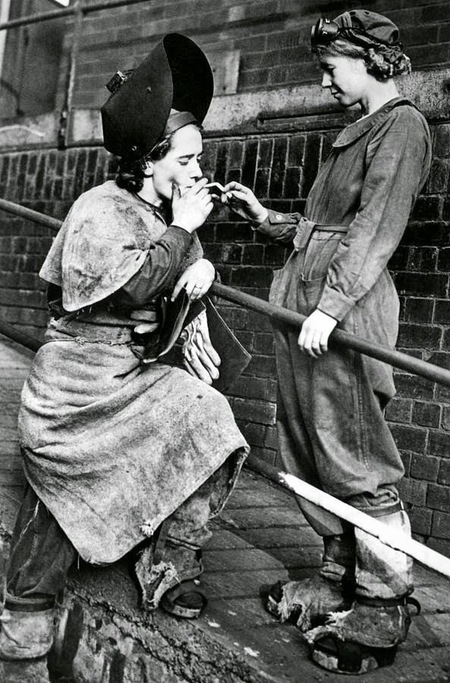 Часть женщин, облачившись в рабочую робу, отправилась работать на заводах вместо мужчин, которые в свою очередь отправились на передовую.