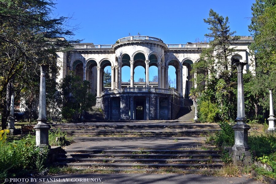 Совсем иная судьба у Гульрипша. От санатория Смецкого остался лишь пустой каркас, то есть в отличие от Орджоникидзе, здесь тело исчезло, только «призраки» остались.