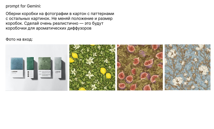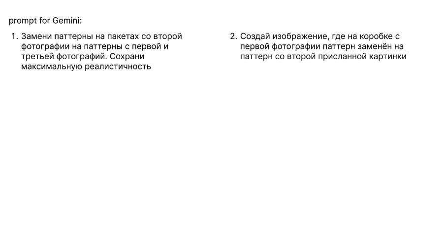 Для удобства просмотра все промпты находятся в слайдерах с генерациями или мокапами