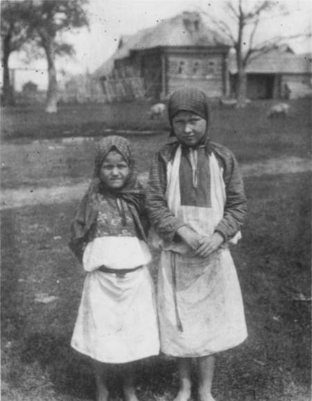Вторая фотография показывает детей из крестьянской семьи, снятых в простой обстановке — на фоне двора. Одежда скромная, поза формальная, фон бытовой. Несмотря на скромность условий, снимок выполняет ту же основную функцию: фиксирует ребёнка как часть семьи, сохраняет память о роду и бытовом контексте. Такой портрет подчёркивает преемственность, родственные связи и значимость каждого ребёнка для семьи, даже если социальные и материальные возможности ограничены.