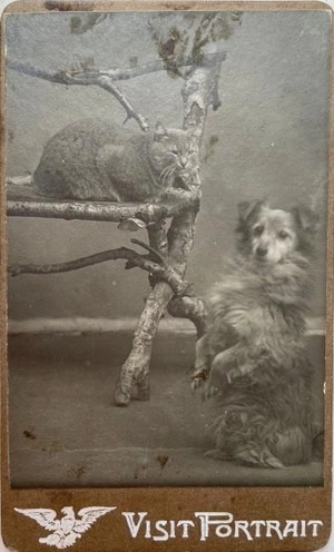 Домашние животные на фотографиях конца XIX — начала XX века занимали особое место в семейных альбомах, отражая заботу семьи, её привычки и эмоциональные связи. Собаки, кошки, лошади или даже птицы появлялись рядом с детьми, взрослыми или на групповых снимках, создавая ощущение уюта, живости и «домашнего мира». Такие фотографии фиксировали не только облик животных, но и их роль как спутников семьи, символов домашнего очага и заботы. Для семейного альбома снимок с питомцем становился памятным моментом, дополняя хронику повседневной жизни и показывая эмоциональные связи внутри семьи.