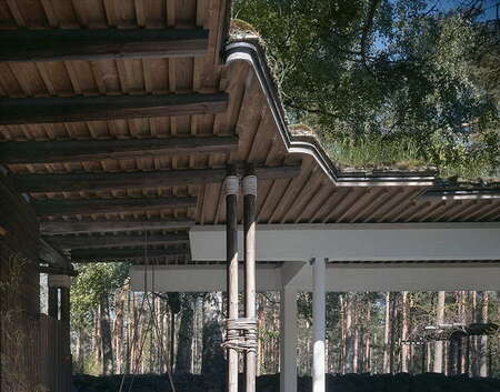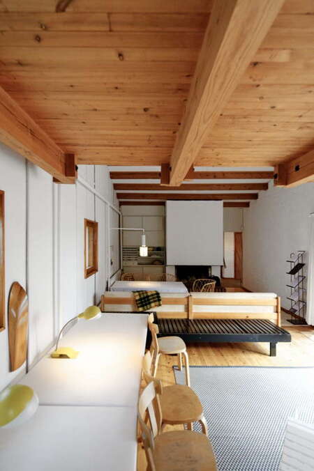 Одним из наиболее ярких примеров взаимовлияния является проект Алвара Аалто — «Дом в Туллиа» (1930), который сочетает ажурность, натуральные материалы и гармонию с природой. Его идеи нашли отклик у японских архитекторов и дизайнеров, особенно в сфере жилых домов и общественных зданий.