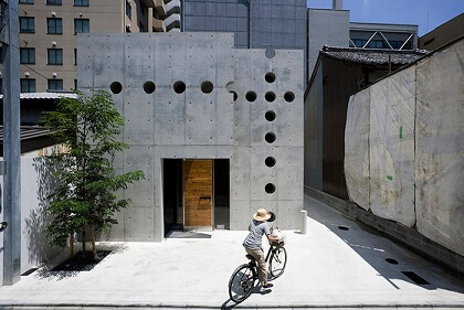 Дом MON Factory в Киото — это жилой дом, спроектированный архитекторами из EASTERN Design Office и HOJO Structure Research Institute в 2007 году. Здание известно своими стенами с рядами круглых отверстий, создающими эффект движущегося света в интерьере, и является одним из символов современного Киото. Дом расположен в традиционном жилом районе и имеет уникальную конструкцию, приподнятую над землей, чтобы создать спокойное пространство внутри и использовать площадь под ним для парковки.