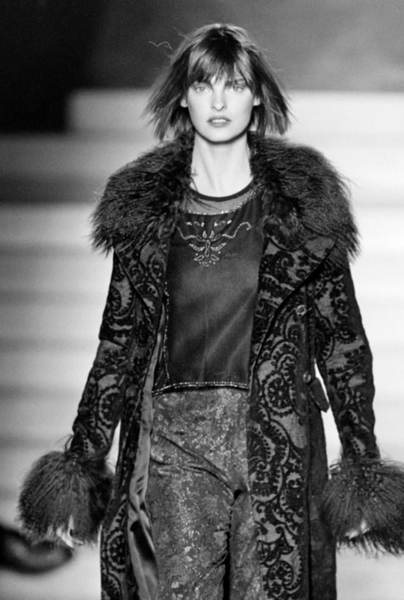 Анна Суй, Накидка Anna Sui, 1997 // Сайт www.gettyimages.com (URL: https://www.gettyimages.com/detail/news-photo/model-linda-evangelista-news-photo/1431216265)
