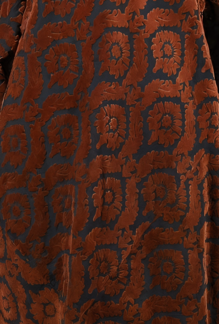 Рей Кавакубо, фрагмент ткани платья Comme Des Garcons, 1996 // Сайт www.1stdibs.com (URL: https://www.1stdibs.com/fashion/clothing/day-dresses/comme-des-garcons-rust-black-velvet-high-back-collar-dress-1996/id-v_15876682/) Просмотрено: 25.11.2025.