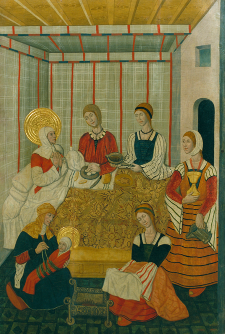 Мастерская Педро Гарсия де БенаБарре, Рождество Пресвятой Девы Марии, c 1445 по 1485 // Сайт commons.wikimedia.org (URL: // Сайт commons.wikimedia.org (URL: https://commons.wikimedia.org/wiki/File:Maria_de_Hoose_(the_Triptych_of_Jan_de_Witte).jpg) Просмотрено: 25.11.2025.