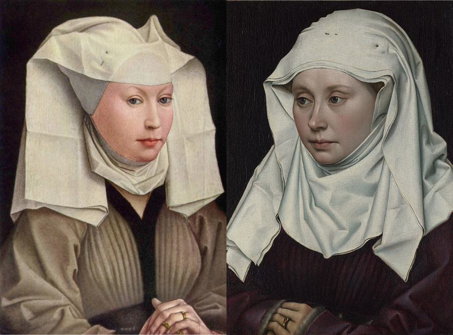 Роджер ван дер Вейден, Портрет молодой женщины в чепце, 1440 Робер Кампен, Портрет женщины, 1435 Jean Paul Gaultier, Женская коллекция, 1997
