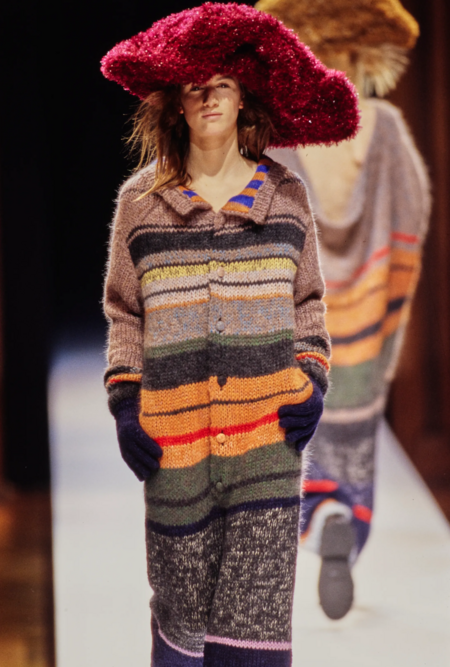 На подиумах 90-х годов можно встретить огромно разнообразие различных головных уборов, отсылающих к прошлому. Тут у них есть две задачи — привлекать внимание, при этом держа дистанцию.