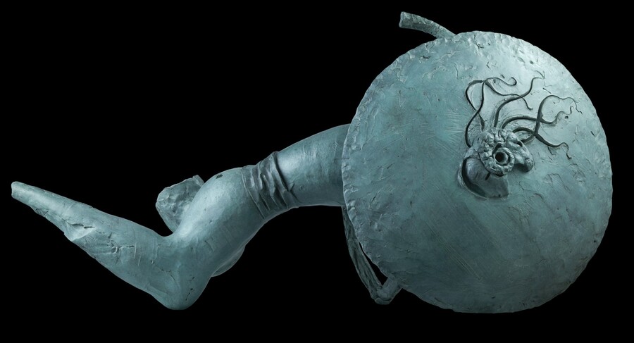 Само название скульптуры Даши Намдакова отсылает к древнейшему народу известному из греческих мифов. Созвучны и диагональные положения тел в обоих произведениях. Также схожа трактовка портрета на фоне щита, оно выступает силуэтом в профиль.