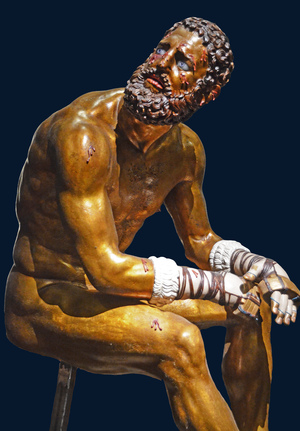 Современная реконструкция статуи «Кулачный боец (Квиринал)» в цвете.