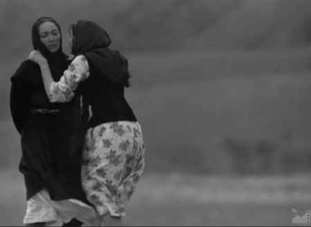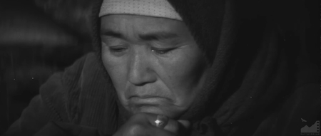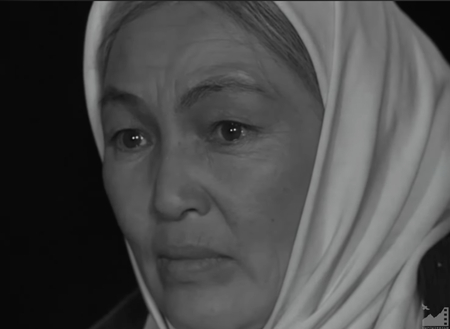 Левый кадр: крупный план показывает переживание не только Толгонай, но и её невестки — каждая несёт свою боль. Их взгляды создают ощущение общей судьбы и разделённого горя.