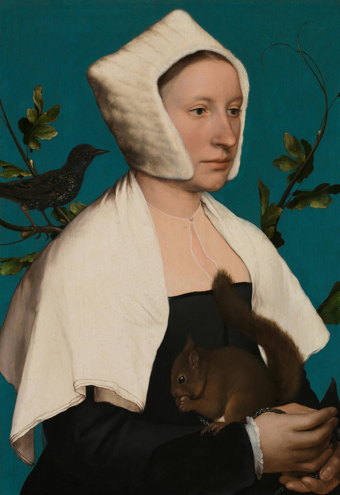 Дама с белкой и скворцом