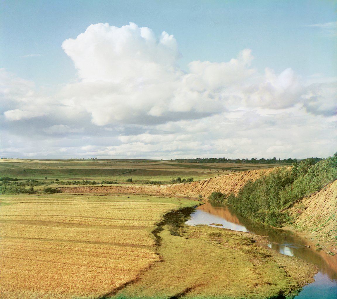 River Koloch at the village of Gorki with a high bank. Borodino Battlefied
