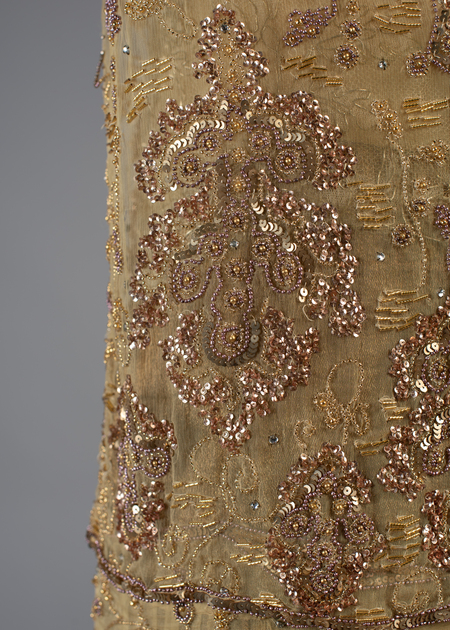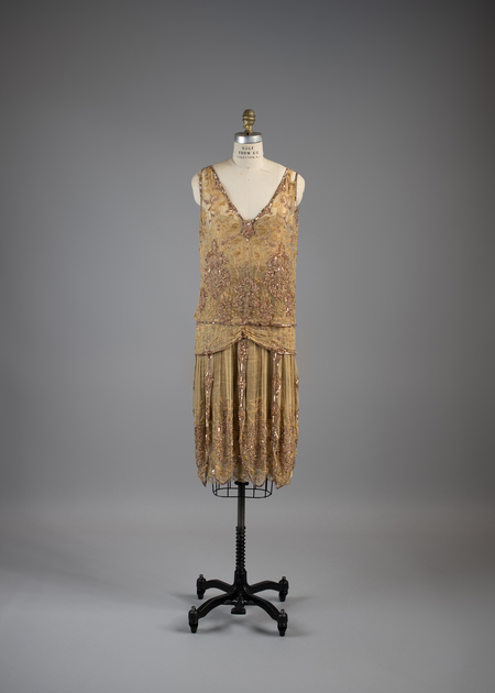 Золотое шелковое платье из органзы с металлической вышивкой и бисером, Max Cohen 1920–1929 гг.