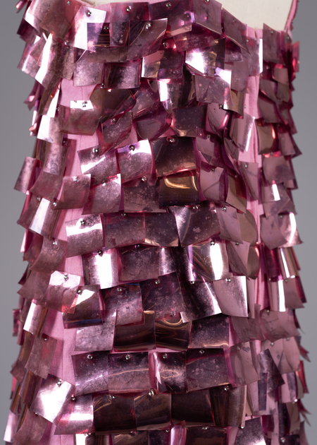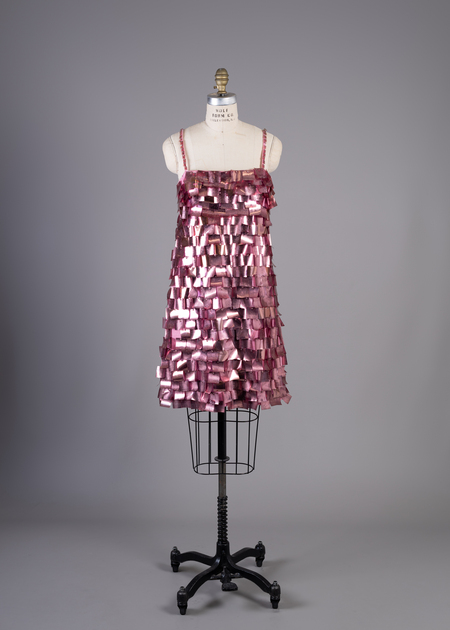 Розовое трикотажное мини-платье с аппликацией из зеркальных пластиковых дисков, Мастерская Гейл Киркпатрик. 1960–1969 гг.