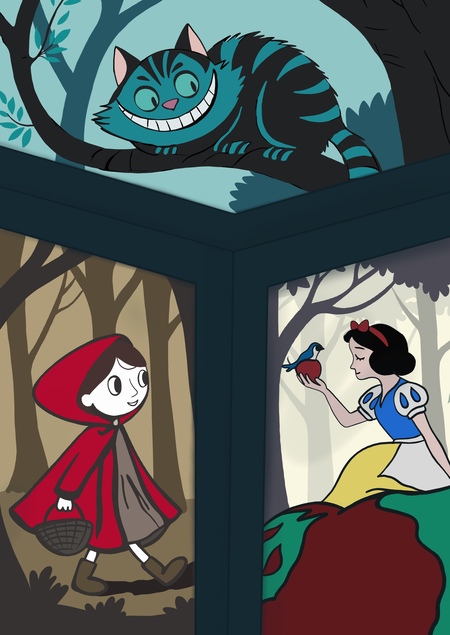 Путешествие в мир детства и фантазии. В миниатюрных театральных диорамах оживают знакомые сказочные сюжеты. Каждый куб воплощает образы в компактных сценах, создавая эффект полного погружения.