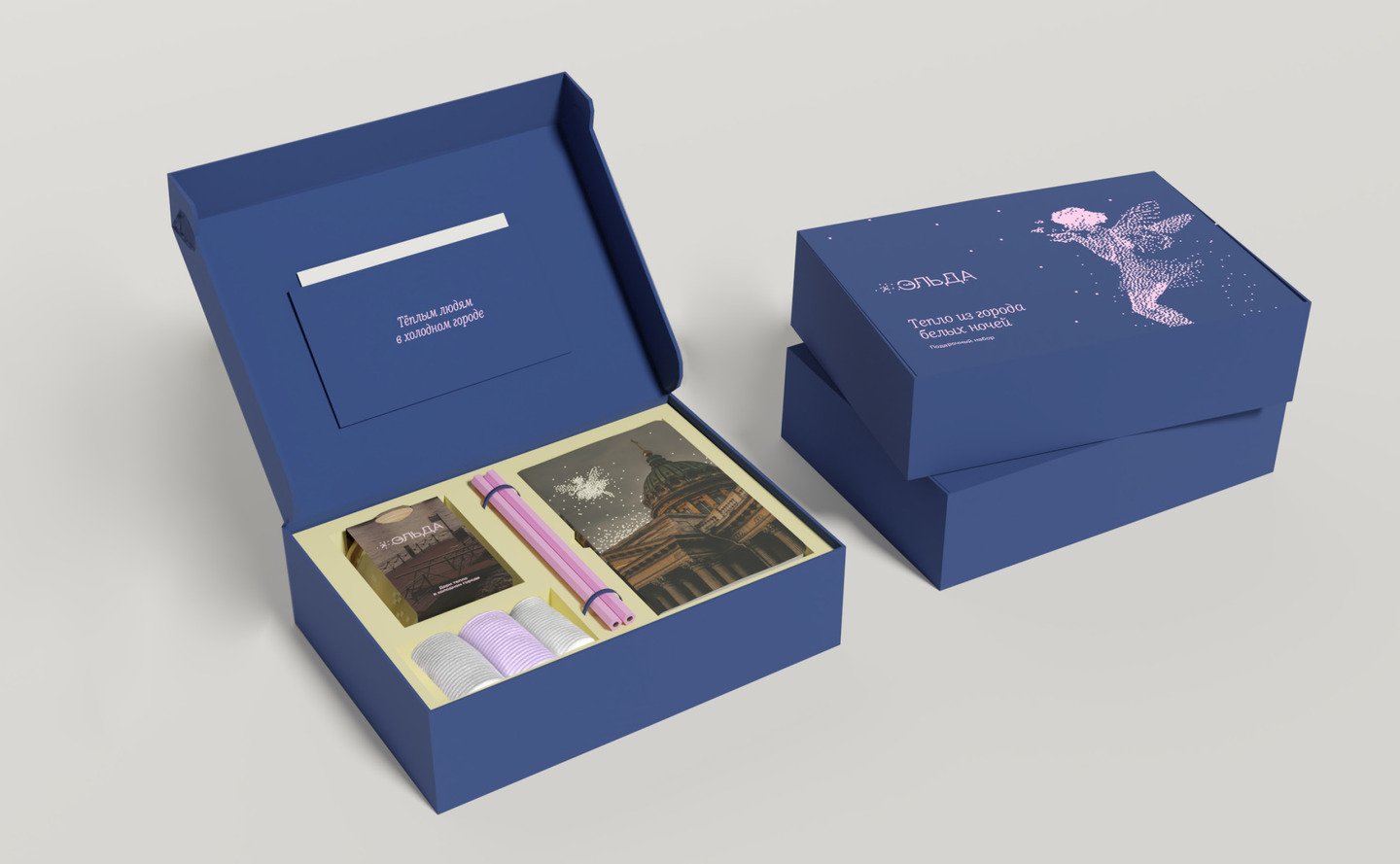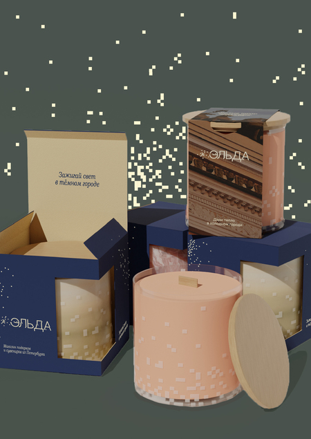 «Эльда» — магазин подарков и сувениров из Петербурга. За основу проекта взят миф об эльфах: крылатых существах, живущих на городских крышах. Считается, что когда человек радуется, в него вселяется эльф