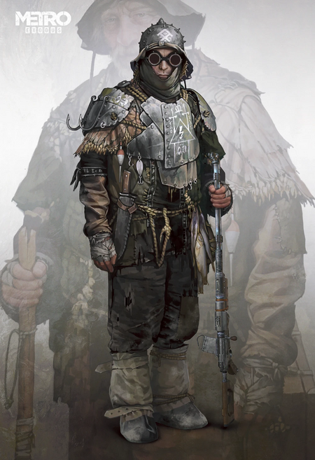 Концепт-арты мирного жителя и паладина культа «Электроборцев». Metro: Exodus (2019).