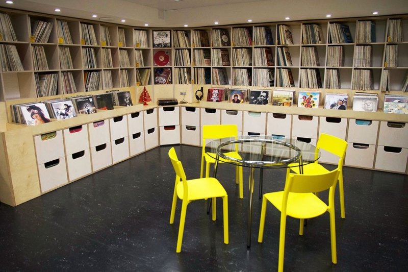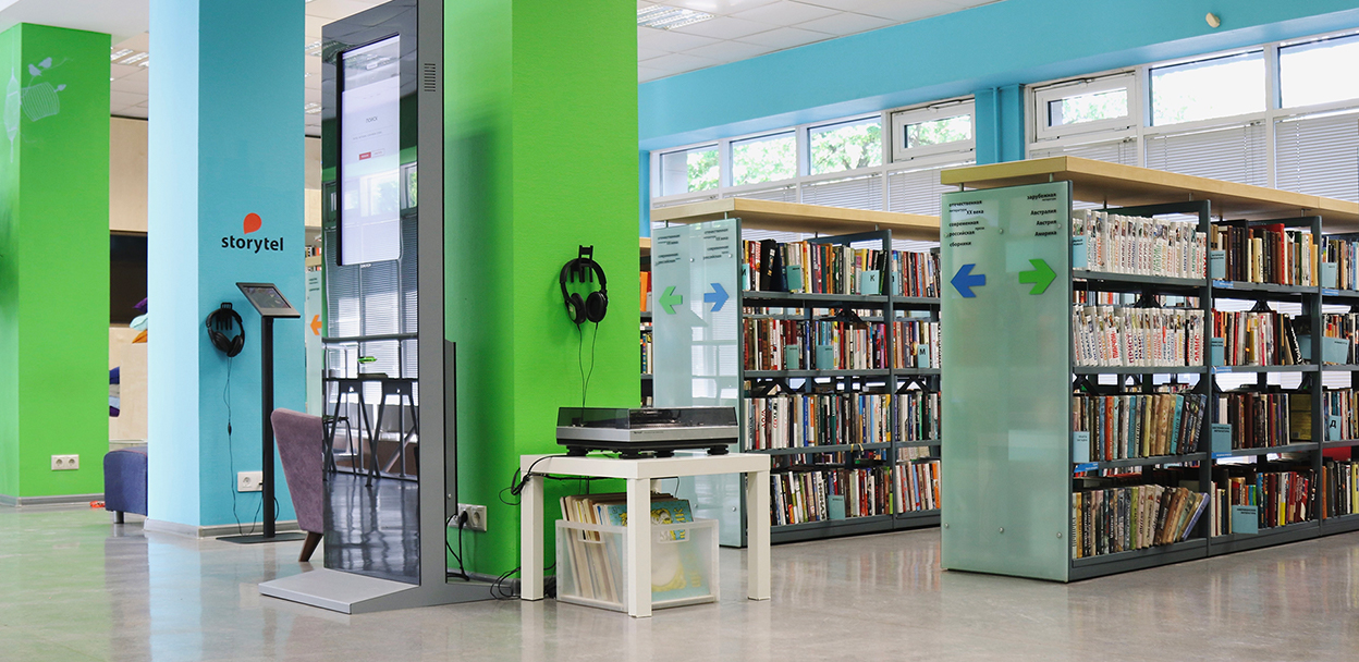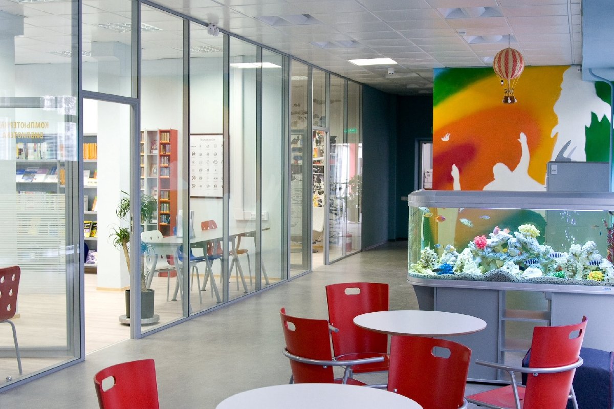 Российская Государственная Библиотека Молодежи является идеальным примером инклюзивного звукового ландшафта. Пространство разделено на зоны, в которых можно работать, читать, общаться и слушать музыку. Сама архитектура помещения создает мягкую акустику, в помещении нет эха. Разделение пространства на зоны помогает изолировать звуки.