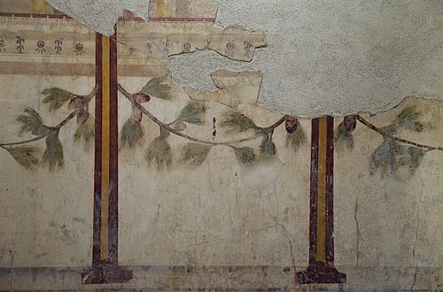 Вилла Фарнезина (ранее — вилла Агриппы Постума) На стенах встречаются ранние варианты украшений, в которых тонкие колонны, виньетки, фантастические фигурки и изящные переплетения образуют воздушные композиции. Эти мотивы позже станут характерными для ренессансного гротеска. Вилла показывает, что уже в позднереспубликанский период римские художники активно экспериментировали с свободными декоративными формами.