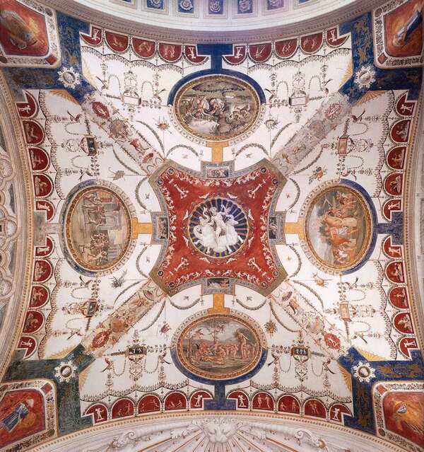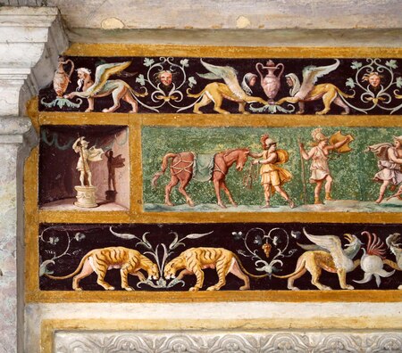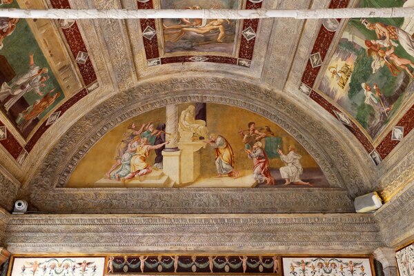 Лоджии Рафаэля, Ватикан Фрески украшены фантастическими архитектурными мотивами, маскаронами и гибридными существами. Композиции создают эффект воздушности и иллюзорного пространства, оживляя стены залов.
