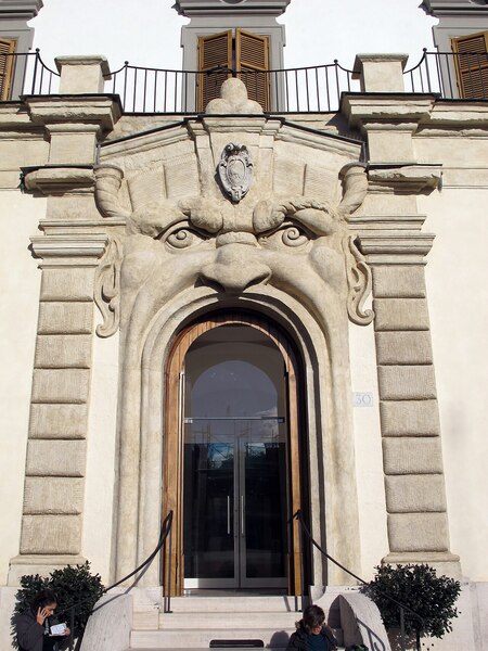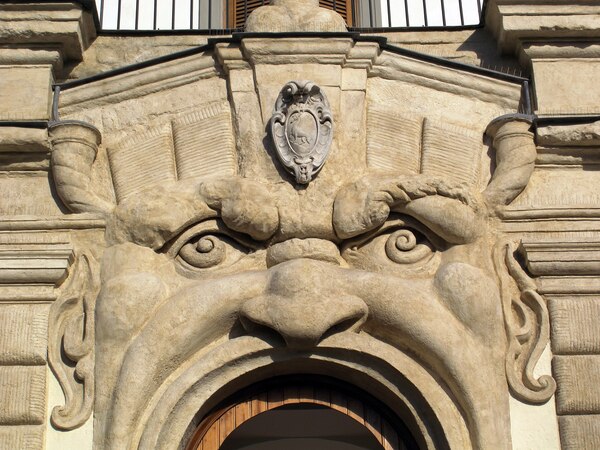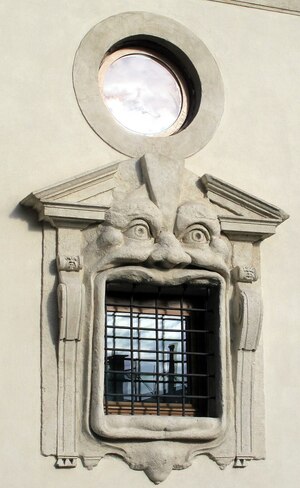 Палаццетто Цуккари, Рим Фасад дворца украшён огромными чудовищными масками, рты которых превращены в дверные и оконные проёмы. Эти гигантские гримасы — яркий пример барочного гротеска: гипертрофия, игра ужаса и декоративная фантазия. Архитектура как будто «оживает», создавая иллюзию, что здание смотрит на зрителя.
