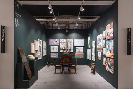 Каждая галерея на ярмарке имеет право выбрать цвет оформления своего стенда — в сочетании с фактурами внутреннего убранства типографии это не может не вызывать эмоции, и позволяет каждой галлерее-участнику проявить свою индивидуальность. Это ломает дистанцию, создаваемую монохромом (как, например, случается в пространствах на COSMOSCOW или Art Russia).