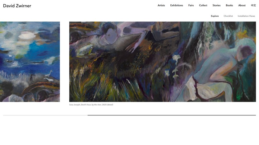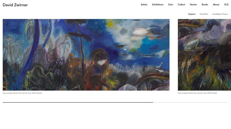 David Zwirner сохраняет в viewing rooms эстетику тишины. Между изображениями выдержаны большие поля, каждая работа получает собственное пространство. Минимальный текст не перегружает просмотр, а только обозначает ключевые параметры: название, дату, медиум. Такая цифровая экспозиция создаёт эффект интимности: зритель оказывается один на один с произведением, без медиального шума. Это риторика, в которой ценность искусства определяется его эстетической автономией.
