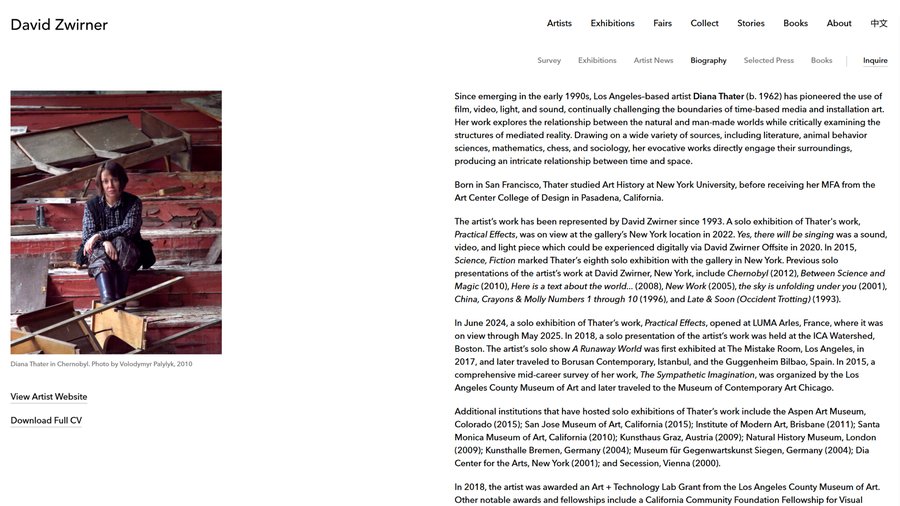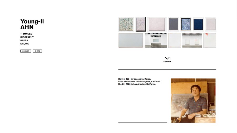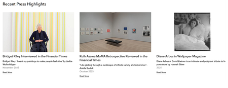Так же как Zwirner — строгие портреты, крупные кадры работ, архивные фото, но с большим количеством контекста.