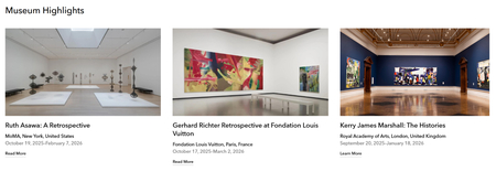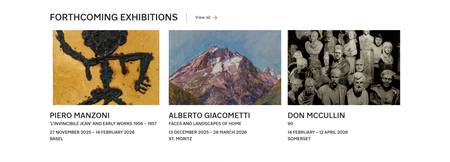 Hauser & Wirth, напротив, использует главную страницу как медиа-поверхность. Посетителя встречают видео-рядом, чтобы за первые секунды погрузиться в атмосферу выставок галереи. На стартовом экране соседствуют выставки, статьи, видеоматериалы, образовательные программы. Это не просто галерея, а культурный центр, где искусство существует в окружении исследований, текстов и архивов.